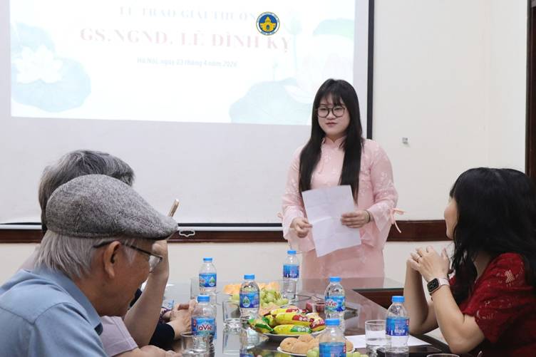 Tiếp nối chương trình, TS. Nguyễn Thị Năm Hoàng đã đọc Quyết định trao Giải thưởng GS. NGND. Lê Đình Kỵ cho các học viên, sinh viên.